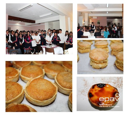 Para as sobremesas estava guardada uma última surpresa. A acompanhar exemplares das referências mais fortes da gastronomia sintrense, fomos presenteados com a Nata de Maçã, uma criação da equipa de pastelaria da EPAV, com patente já registada e que, digo eu, quando começar a ser comercializada, vai ser um sucesso garantido. É superlativa. Só quando tiverem oportunidade de provar uma é que vão perceber o que agora afirmo.